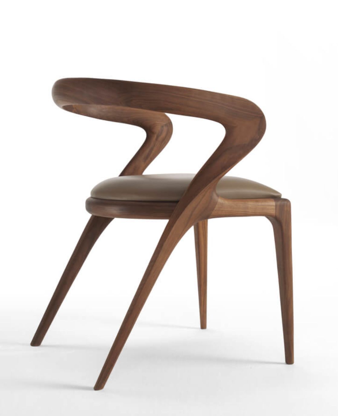 Chaise organique — Bois noyer & assise rembourrée
